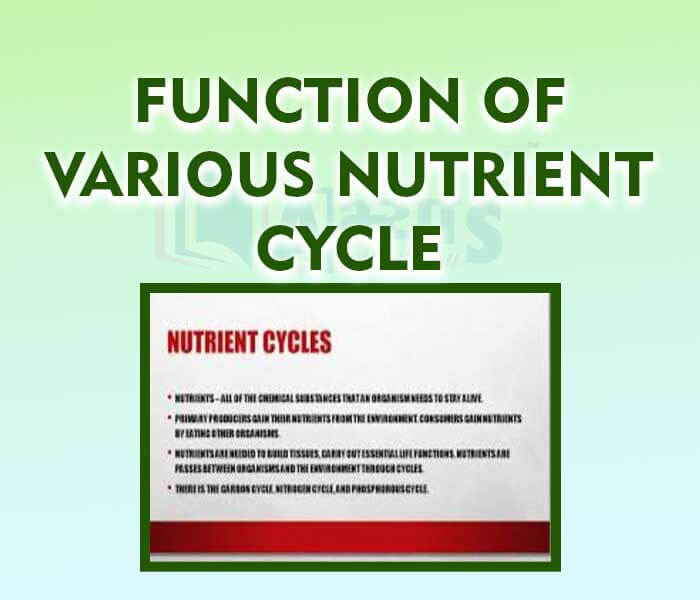 - Functions of various nutrient cycle