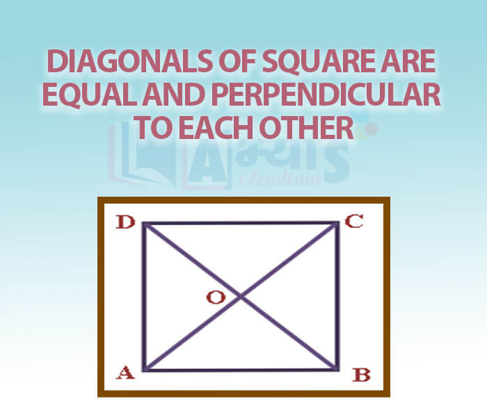 - Diagonals of Square Are Equal and Perpendicular to Each Other.
